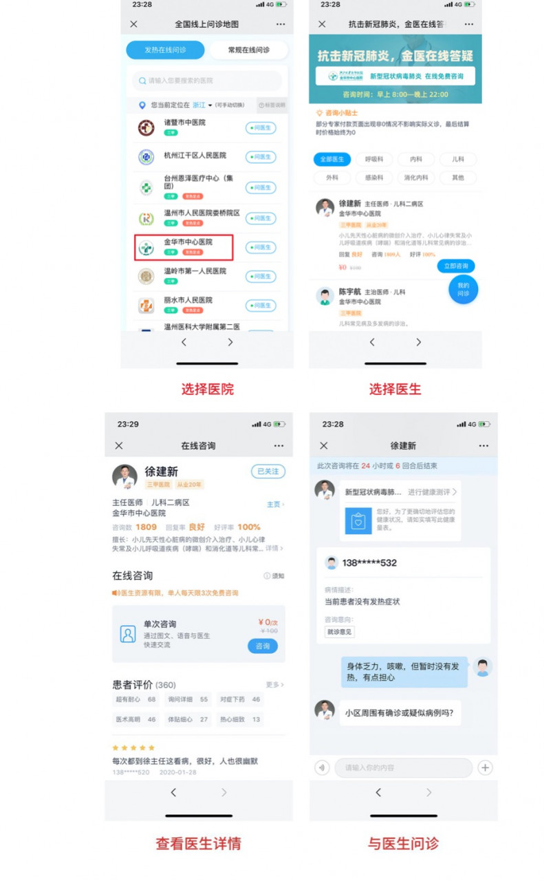 在“惯例在线问诊”下,关于有各种非发热病症的患者,可直接挑选对应的医院,而且点击“问医师”。点击后进入对应医院的官方发热线上问诊页面和流程。